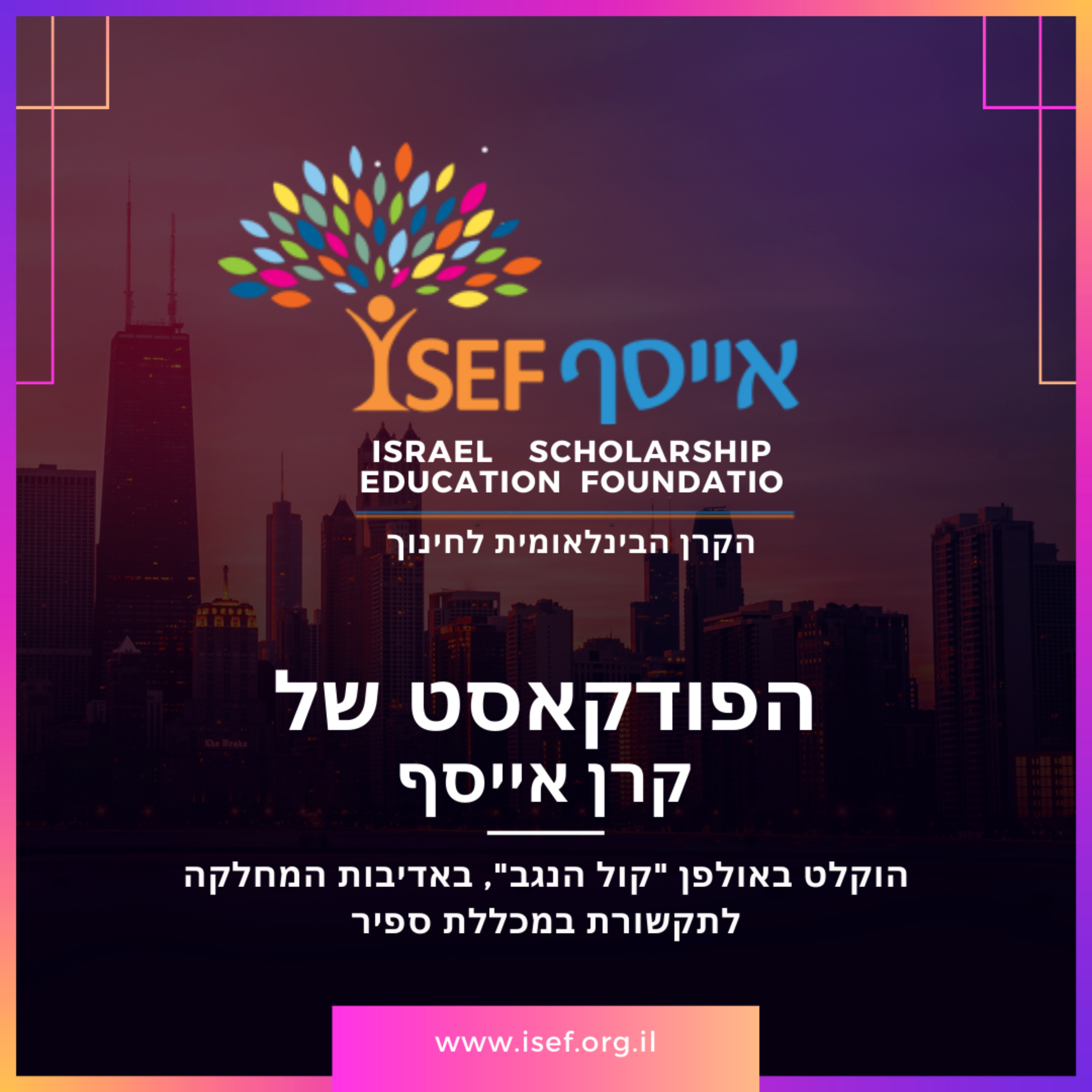 קרן אייסף היא ארגון חברתי ציוני, הפועל לקידום שוויון הזדמנויות בחינוך וצמצום פערים בחברה הישראלית באמצעות הגברת הנגישות להשכלה גבוהה ופיתוח מצוינות ומנהיגות חברתית-אקדמית בקרב סטודנטים שהם דור ראשון להשכלה גבוהה. בכל פרק נצלול לנושא אחר ונתמקד בחברה הישראלית, השכלה ונתינה.